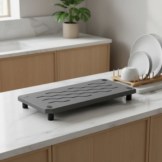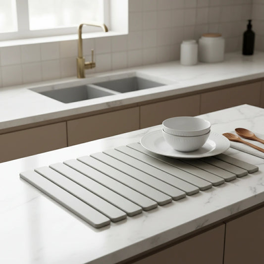 In the kitchen, diatomite is a game changer: a mineral tray that absorbs water, dries quickly, and stays clean. This microporous material combines efficiency, an ultra-absorbent surface , and easy maintenance. Explore the Diatomite Drainer collection, compare sizes, and create a drier, healthier sink area.
