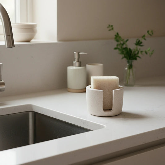 Around the sink, the kitchen demands humidity control. Ventilated drainers, airy sponge holders, and mineral mats limit microbial growth. Surfaces specifically designed for the culinary environment dry without odor, unlike textile solutions which remain damp longer.